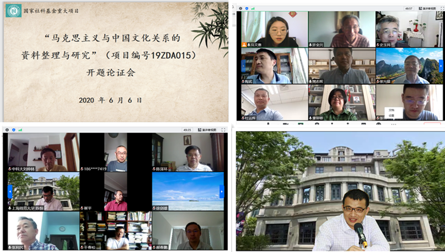6月6日,我校張允熠教授主持的國家社科基金重大項目“馬克思主義與中國文化關系的資料整理與研究”舉行了線上開題報告會。中共中央黨校哲學部許全興教授、中國社會科學院哲學所張利民研究員、北京大學哲學學院干春松教授、復旦大學哲學學院何俊教授、上海師范大學哲學與法政學院晏輝教授作為同行專家評議委員會成員出席開題報告會。副校長陳恒教授、社科處處長董麗敏教授、社科處副處長石力月副教授、哲學與法政學院副院長樊志輝教授、馬克思主義學院副院長徐劍雄副教授,和項目組各子課題負責人及成員共30余人出席了開題論證會。